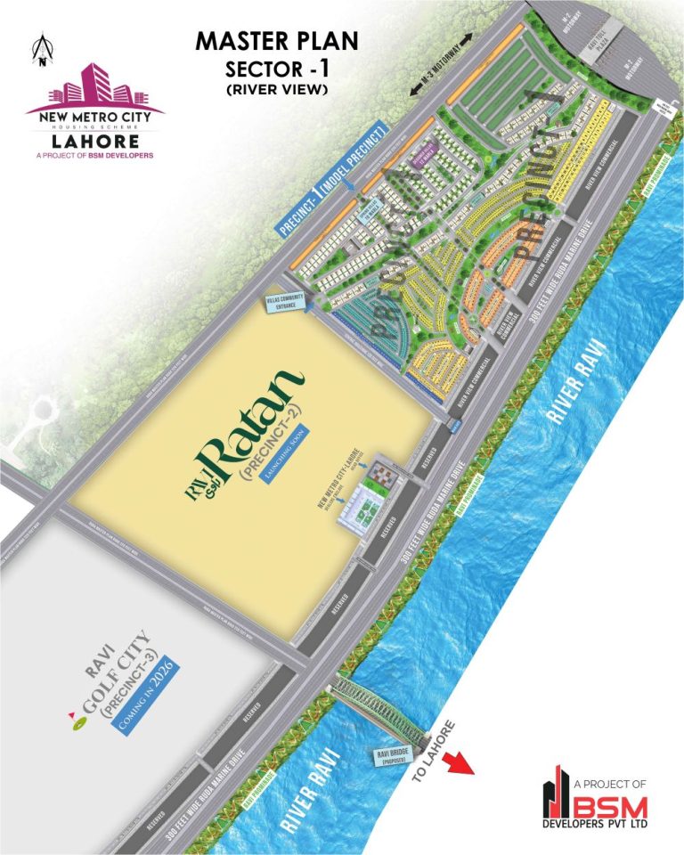 Nestled in the heart of Lahore’s historic, New Metro City is a standard of modern living and modern construction. New Metro City Lahore is one of the Lahore city’s most modern and stunning views housing society near river ravi toll plaza M2 motorway, designed to reshape the standards of modern living. Backed by the trusted name BSM Developers and approved by RUDA, the New Metro City Lahore enjoys a landmark location and brings state of the art facilities, commute convince, and long-term investment benefits.